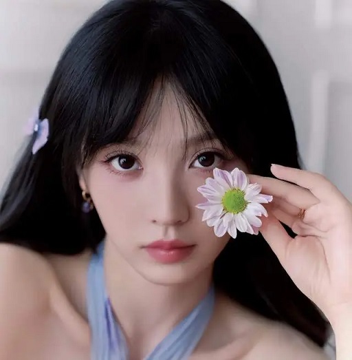 将那抹粉蓝作为惊艳的三分点缀,沿着下眼睑从眼尾细细描绘至眼球正下方。这一步要干净利落,与上方的紫形成清晰对比。最后用黑色眼线笔勾勒精致眼线,刷出根根分明的睫毛,让双眼在色彩中依然有神。